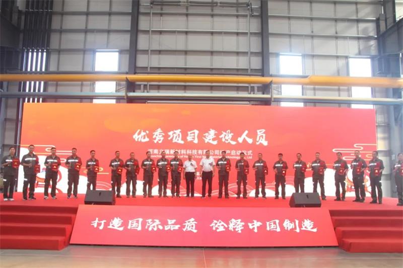 儀式上,總經理劉杰向長期以來關心支持明泰發(fā)展的各級黨委、政府,向各參建單位表示衷心的感謝,向在明泰鋁業(yè)高質量發(fā)展過程中取得“功勛集體”榮譽的項目部全體員工表示熱烈的祝賀。明泰鋁業(yè)堅持“創(chuàng)新、綠色、智慧、開放”的發(fā)展理念,踐行“高端制造+低碳經濟”雙驅動戰(zhàn)略,完成了明泰科技、明晟新材以及義瑞新材等幾個重要項目,在逆勢中鞏固了明泰的行業(yè)優(yōu)勢,標志著明泰鋁業(yè)在高質量發(fā)展的道路上,又向前邁出了一大步。義瑞新材以58億元總投資,旨在打造“高端+綠色+智慧”一體化生產制造體系,是明泰鋁業(yè)單體投資最大的一個項目。項目建設充滿挑戰(zhàn),我們抗擊了“7.20”特大洪災,克服了新冠疫情影響,突破了項目技術難題,處置了建設突發(fā)情況,全體參建人員患難與共,確保了項目按時按質順利實施。整個項目在不到10個月的時間里,就建成現(xiàn)代化標準廠房15萬平方米,各主要設備按時安裝到位,實現(xiàn)項目順利投產。未來,我們要把企業(yè)打造成為技術創(chuàng)新示范企業(yè)、綠色轉型引領企業(yè)、智能制造標桿企業(yè)和開放發(fā)展先鋒企業(yè),堅定“項目為王”理念,通過建項目來擴產能、通過建項目來提質量、通過建項目來促轉型,實現(xiàn)企業(yè)高質量發(fā)展,為地方經濟社會發(fā)展貢獻力量,為行業(yè)發(fā)展增光添彩!